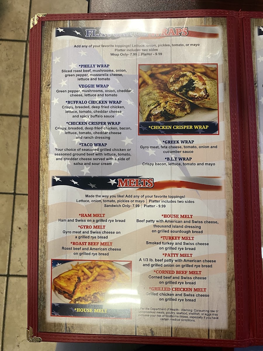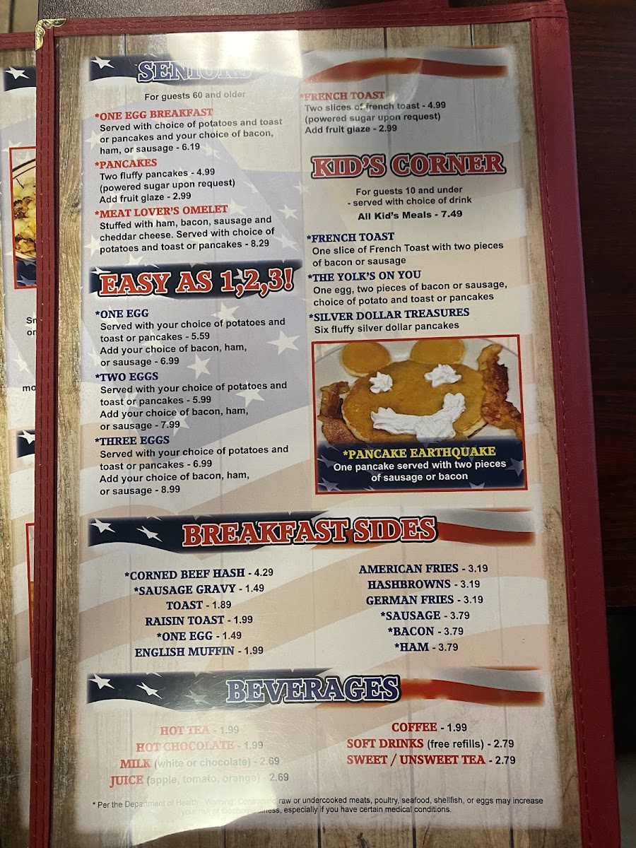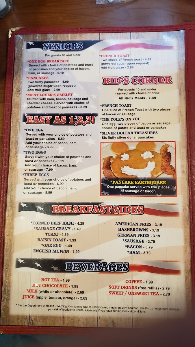 Stuffed with fresh spinach & cheese. Served with choice of potatoes and toast or pancakes. Per the Department of Health - Warning: Consuming raw or undercooked meats, poultry, seafood, shellfish, or eggs may increase your risk of foodborne illness, especially if you have certain medical conditions.